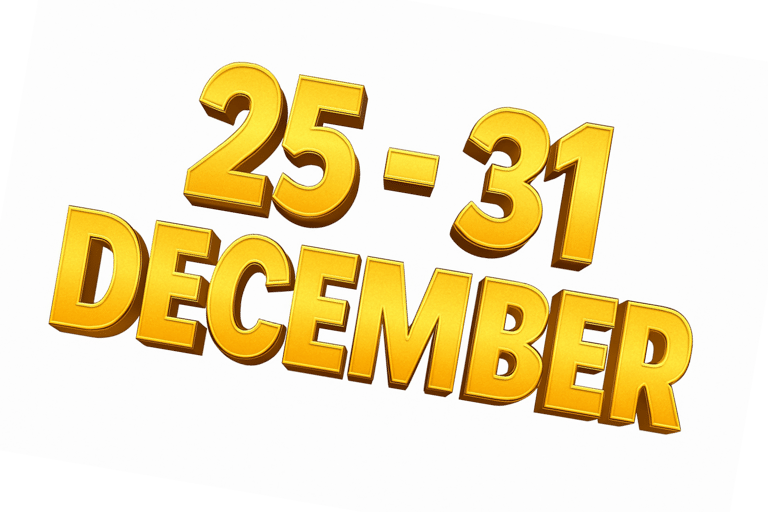7 days, December 25 – 31, 2025.